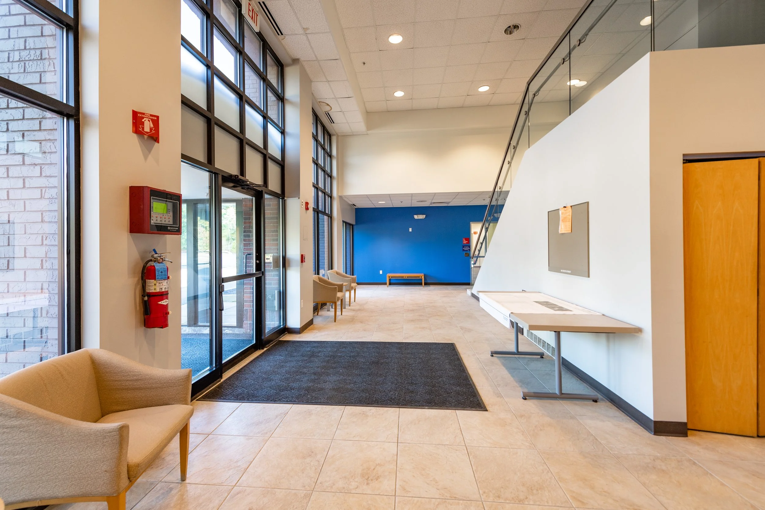 We installed new energy-efficient high bay LED lighting, and the exterior façade upgrades included EFIS repairs and new exterior paint. The exterior site work upgrades included the installation of new fire hydrants to serve the newly upgraded interior fire suppression system, plus the conversion of the building waste system from private to public.